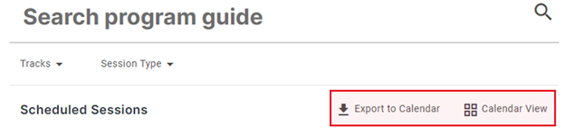 单击“导出到日历”以将搜索或过滤视图中的所有会话下载到您的日历。