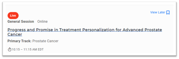 无论您错过了会议还是想回顾您参加的会议,ASCO 都会记录大多数会议以供以后查看。现场演示的课程将在课程结束后不久提供,并且可以通过单击节目指南中的课程卡来访问。