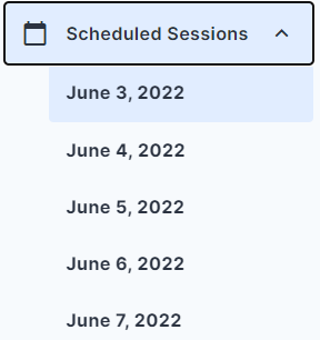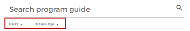 通过单击左侧导航中的“预定会议”选项卡,查看将在指定日期和时间现场直播的所有会议。使用程序中的曲目和会话类型过滤器来帮助您对特别感兴趣的会话进行排序。