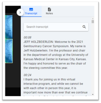除了章节之外,您还可以在会话记录中搜索特定单词。如果您单击成绩单中生成的单词,当演示者说出单词时,您将被带到视频中的位置。成绩单通常在会话结束时间后四个工作日提供。