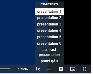 进入会话后,您可以通过单击点播播放器底部的章节图标来播放整个会话或跳到特定的演示者。章节图标将显示与应用于每个会话的单独演示的标签相匹配的演示列表。